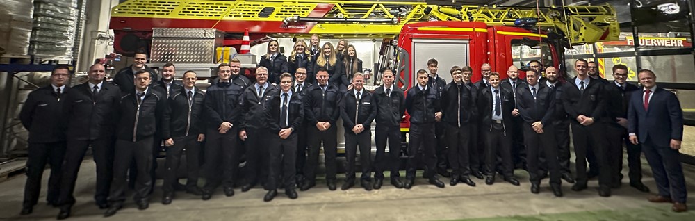 „Allen Feuerwehrleuten gebührt unser höchster Respekt für ihren ehrenamtlichen Einsatz“, betont Oberbürgermeister Jan Einig, der die 30 Neuzugänge offiziell verpflichtete und im Feuerwehrdienst willkommen hieß. Während der ein- bis zweijährigen Grundausbildung lernen die Neuen nun von A wie Absturzsicherung bis Z wie Zugführer alles, was ihnen im Ernstfall hilft, Einsätze sicher und erfolgreich zu bewältigen. Dabei fangen nicht alle bei Null an, betont Wehrleiter Kai Jost, denn einige Kameraden seien von anderen Wehren nach Neuwied gewechselt oder haben schon Vorwissen. Einige Anwärterinnen und Anwärter konnten bereits in den vergangenen Monaten verschiedene Ausbildungseinheiten in ihren jeweiligen Löschzügen absolvieren. Andere haben aufgrund ihrer beruflichen Erfahrung, beispielsweise im Handwerk, einen hilfreichen Wissensvorsprung.