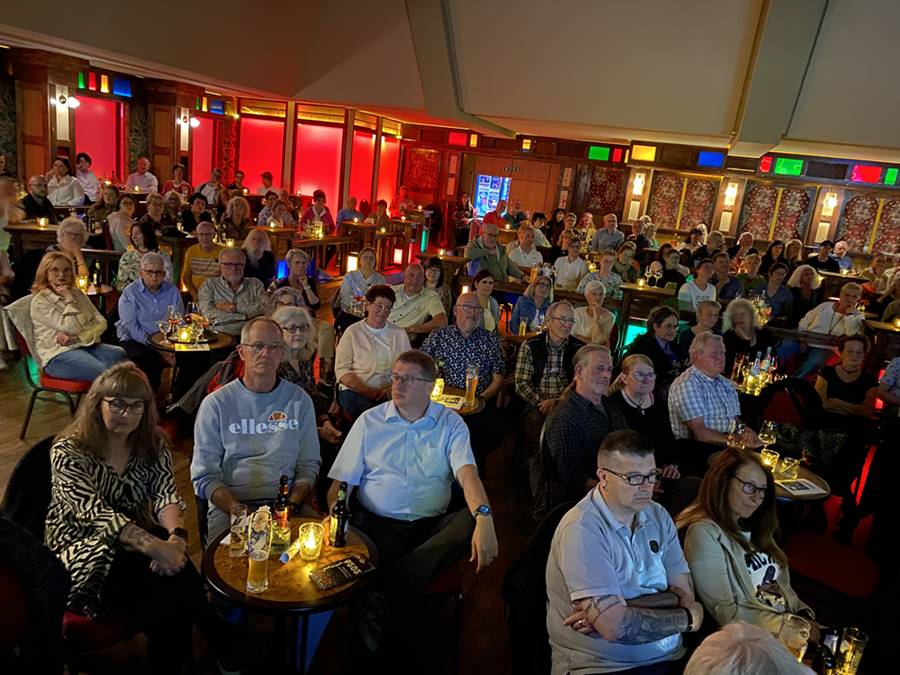 Christine ist eine sympathische Persönlichkeit, die Backstage zunächst noch in ihrer Bühnenrolle ist, aber so langsam in ihren kölschen Dialekt verfällt. Ihre rheinische Frohnatur bringt sie rüber, auch, weil das Publikum sprachlich nicht immer folgen konnte, erst recht als sie nach Jack Daniels fragte und dann nach mehrfachem Bitten ein Wasser mit Sprudel bekam, das sie humorvoll als perlenden Wodka bezeichnete.