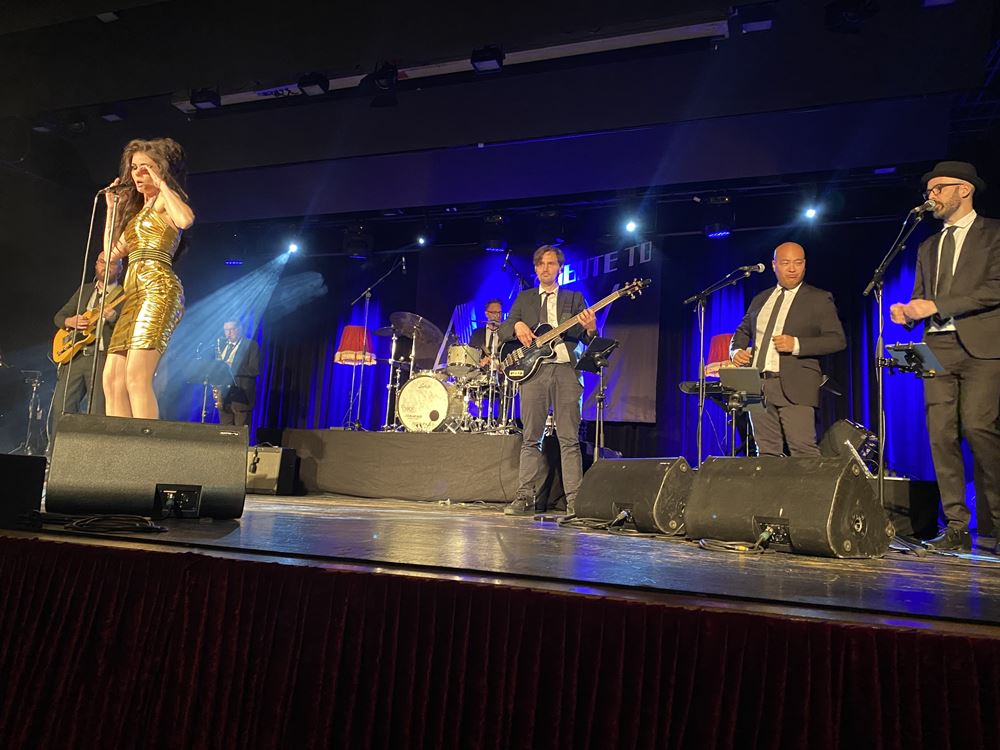 - Foto: Mit ihrer 9-köpfigen Bigband zauberte das Amy Winehouse Tribute in der Person von Christine Ladda eine Atmosphäre in die Stadthalle, die an Niveau nicht zu überbieten war. Foto: Werner Klak