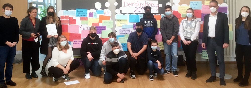 Parallel zu den Workshops entstand unter Anleitung des Kreisjugendrings eine Meinungswand, auf der die Jugendlichen Ihre Wünsche, Forderungen und Ideen für das Land RLP anbrachten. Diese wurden nachmittags im Gespräch mit dem Präsidenten des Landtags Rheinland-Pfalz Herrn Hering diskutiert. Die Pläne und Maßnahmen der Landesregierung zu kostenlosem Nachhilfeunterricht, preiswertem Nahverkehr und die Modernisierung von Lehrplänen waren weitere Themen des anderthalbstündigen Gesprächs, das dem Tag einen würdigen Abschluss verlieh.