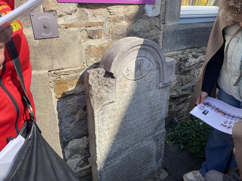 - Foto: Ein über 300 Jahre alter Grabstein vor der Christuskirche erinnerte an die Geschichte der Altenkichener Familie Neuhoff, die mit einem Malerbetrieb nach wie vor ortsansässig ist. Foto: Werner Klak