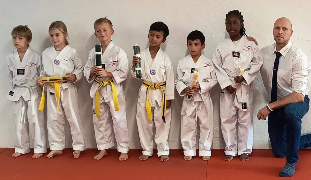 In den einzelnen Lernbereichen Traditionelle Techniklehre, Bewegungsformen, koreanische Terminologie, Zweikampf, Pratzentraining, Selbstverteidigung und Überprüfung des Vorprogramms bestanden vor Bundesprüfer Eugen Kiefer die folgenden jungen Geprüften zum jeweilig neuen Gürtel: