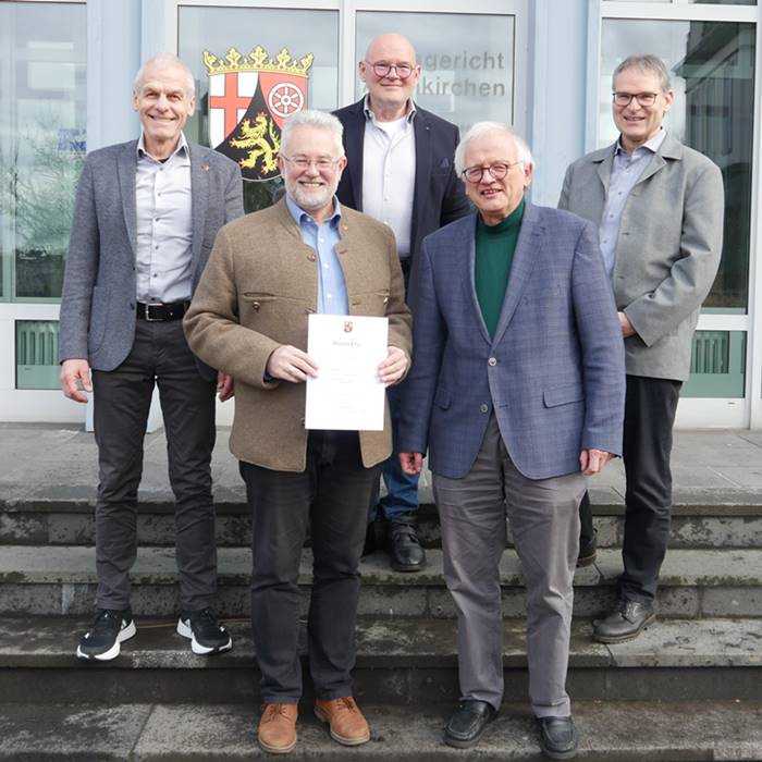 Nicht jeder Streit muss vor Gericht enden – dafür gibt es die Schiedspersonen. Sie vermitteln häufig erfolgreich zwischen Bürgerinnen und Bürgern, bevor Konflikte eskalieren, und entlasten damit Gerichte und Justizbehörden. In dieses wichtige Ehrenamt wurde nun Michael Rüttger, Ortsbürgermeister von Hilgenroth, als stellvertretender Schiedsmann für den Bezirk Altenkirchen (Gebiet der ehemaligen Verbandsgemeinde Altenkirchen) eingeführt. Er folgt auf Klaus Schneider, der das Amt aus gesundheitlichen Gründen niederlegt.