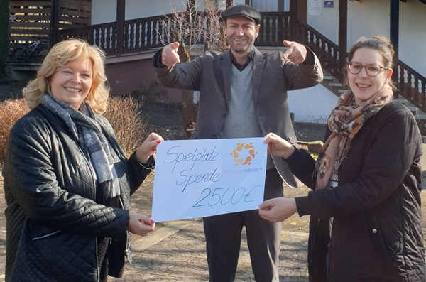 ALTENKIRCHEN – NISTER – Kinderwunsch „Spielplatz“ soll bald erfüllt werden – Einen eigenen Spielplatz mit Nestschaukel, Trampolin und Spielfläche mit Grillplatz wünschen sich die Kinder der beiden Wohngruppen des gemeinnützigen Jugendhilfeträgers MUTABOR Mensch & Entwicklung in Nister schon lange. Dafür sind Spenden nötig. Der Lions Club Altenkirchen Friedrich Wilhelm Raiffeisen hilft mit einem Scheck über 2.500 Euro.