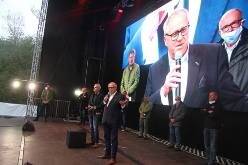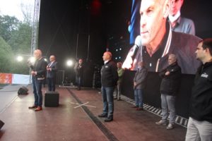 ALTENKIRCHEN – Offizielle Eröffnung des Autokinos in Altenkirchen – Bürgermeister Fred Jüngerich gab den Startschuss. – Das „Wäller Autokino“ auf dem Weyerdamm wurde am Donnerstag, 04. Juni 2020, offiziell eröffnet. Jüngerich begrüßte zahlreiche Gäste unter ihnen auch Landrat Dr. Peter Enders, Prof. Dr. Hardeck (Kultursommer RLP), Stadtbürgermeister Mattias Gibhardt die Beigeordneten der VG Altenkirchen-Flammersfeld und nicht zuletzt die Initiatoren des Projektes, Veranstalter und Iventmanager Michael Müller aus Oberwambach und Kinobetreiber Uli Hüsch (Cinex Hachenburg und Asbach) sowie Samuel Tomasiello (Wied Skala Neitersen) und zahlreiche Sponsoren aus der Region, ohne deren professionelle Hilfe dieses Projekt in so kurzer Zeit (vier Wochen) nicht möglich gewesen wäre.