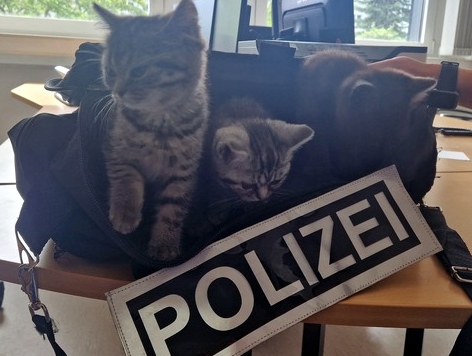 Sonntagvormittag wurden der Polizeiinspektion Bad Kreuznach gegen 09:50 Uhr mehrere Katzenbabys auf dem Flowtrail-Parkplatz „P3“ in Stromberg gemeldet. Vor Ort konnten die drei, augenscheinlich erst wenige Wochen alten, Britisch-Kurzhaar-Katzen aufgefunden und Dank der Mithilfe von Passanten eingefangen werden. Einen provisorischen Unterschlupf fanden die Kätzchen zunächst in einer der Einsatztaschen der Beamten und konnten so zur Dienststelle gebracht werden. Nach ausgiebigen Streicheleinheiten wurden die Kitten an den Katzenschutzverein übergeben. Die Polizei ermittelt nun wegen des Verstoßes gegen das Tierschutzgesetz. Sachdienliche Hinweise zum Besitzer erbittet die Polizei Bad Kreuznach unter der 0671 8811 101. Quelle und Foto: Polizei