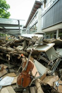 Dieser Jemand hat Glück gehabt. Seine Familie ist unversehrt, sein Haus ist intakt, er hat Strom. Dafür ist er sehr dankbar. Er erstellte eine „Wunschliste“ mit Dingen, die am dringlichsten benötigt wurden und werden, wie etwa Stromaggregate, Campinggaskocher, Hygieneartikel, Ladegeräte, Hochdruckreiniger, Verbandsmaterial, Reinigungs- und Desinfektionsmittel, Tanks für Trinkwasser. Ein Rundruf im privaten Umfeld und ein erstes Fahrzeug wurde vollgeladen und nach Bad Neuenahr auf den Weg geschickt. Dieser erste, winzige „Tropfen auf den heißen Stein“ und der erschütternde Eindruck vor Ort bestärkte das Team darin, dass sehr schnell sehr viel mehr getan werden musste. Die Information, dass Lions Deutschland zusammen mit den Distrikten der betroffenen Regionen und der Stiftung der Deutschen Lions ein Komitee gebildet hat, um schnell und unbürokratisch Soforthilfen leisten zu können, kam da wie gerufen.