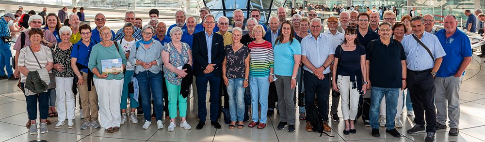 „Diese Kontakte mit Wählerinnen und Wählern aus meiner Heimat sind mir auch hier in Berlin sehr wichtig“, bekräftigte Erwin Rüddel beim mit Dank und Applaus quittierten gemeinsamen Fototermin auf der Besucherebene im Reichstagsgebäude.