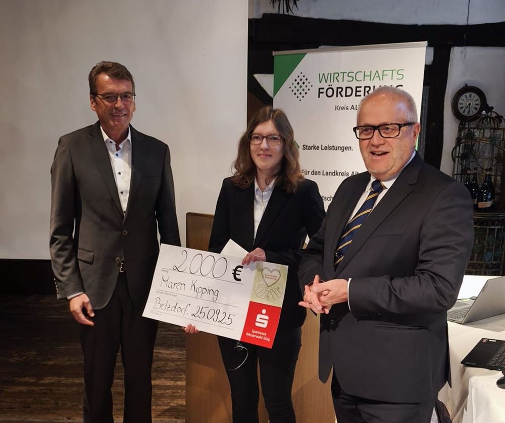 Der Studienpreis wird einmal jährlich für besondere Abschlussarbeiten an aus dem Kreis Altenkirchen stammende Absolventinnen und Absolventen der Universität Siegen verliehen und ist ein Kooperationsprojekt des Kreises Altenkirchen und der Sparkasse Westerwald-Sieg. Die Sparkasse stiftet den Preis, der mit 2.000 Euro dotiert ist. Er wurde in diesem Jahr zum 22. Mal verliehen. „Die Auszeichnung trägt der engen Bindung der Menschen und auch der Unternehmen unserer Region mit der Universität Siegen Rechnung“, sagte Landrat Dr. Peter Enders in seinem Grußwort. Zuvor hatte Dr. Andreas Reingen (Vorstandsvorsitzender der Sparkasse Westerwald-Sieg) die Gäste im „Breidenbacher Hof“ in Betzdorf begrüßt und betont, dass die diesjährige Preisträgerin die Kriterien für die Verleihung des Studienpreises nicht nur erfüllt habe, sondern ihre Leistungen weit darüber hinaus gingen.