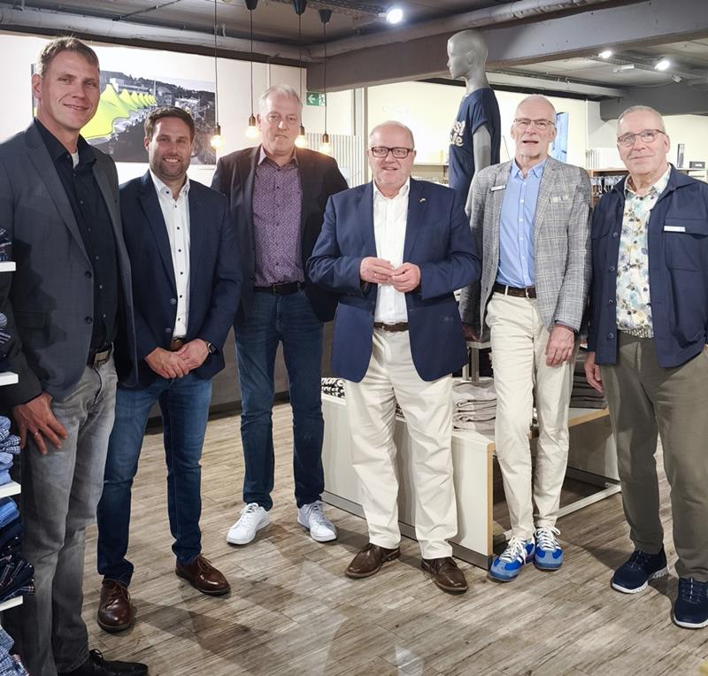 Davon überzeugten sich jetzt auch Landrat Dr. Peter Enders, Bürgermeister Joachim Brenner, Stadtbürgermeister Johannes Behner sowie Michael Becher und Lars Kober, Wirtschaftsförderer der Verbandsgemeinde Betzdorf-Gebhardshain bzw. des Kreises Altenkirchen. Neben spannenden Einblicken in die Historie wurden bei diesem Austausch auch Herausforderungen und Perspektiven für die Zukunft angesprochen. So habe die jahrelange Straßensperrung in Steineroth dem Standort Betzdorf und dem Modehaus geschadet. „Wir mussten ins immer wieder neu erfinden und mit der Zeit gehen. So sehen wir den Onlinehandel als Chance, unsere Produkte über den digitalen Weg zu vermarkten, berichtete Geschäftsführer Christoph Burghaus.