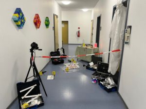 Die Arbeit der Kriminalpolizei konnten die Interessierten anhand eines nachgestellten Tatorts kennenglernen. Dabei waren auch Einblicke in „kriminelle Utensilien“ wie Betäubungsmittel, Falschgeld und verschiedene sichergestellte Waffen und gefährliche Gegenstände möglich.
