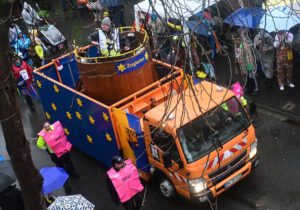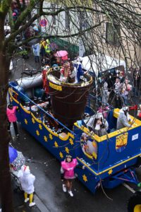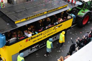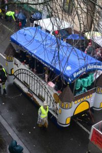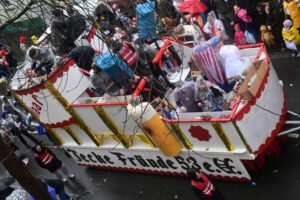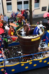 Mit dabei, die Beueler Damenkomitees, Kindergärten, Schulen, Sportvereine. Die Wäscherprinzessin wird jedes Jahr aus einem der 18 Damenkomitees gestellt. In diesem Jahr ist es „St Josef“. Dieses Komitee hatte dann die Ehre mit der Wäscherprinzessin am Ende des Zuges zu gehen, und so das Highlight mitzugestalten.