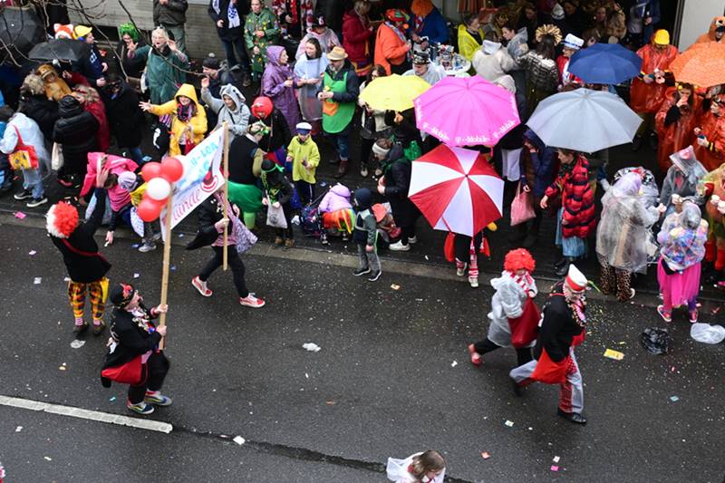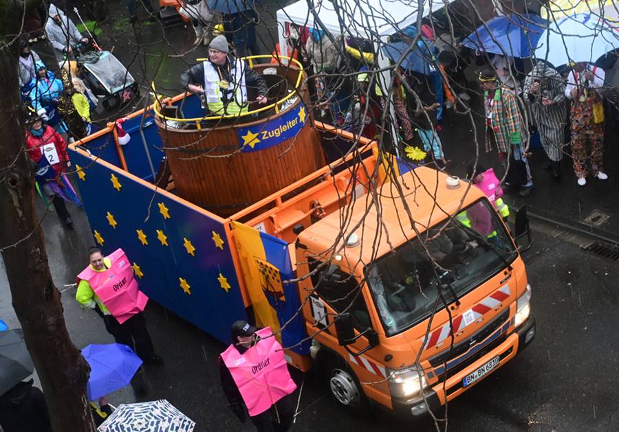 Am Donnerstag, 12.02.2026 schlängelte sich der Weiberfastnachtszug kreuz und quer durch Beuel. Voran um 11.11Uhr die Polizei, die den Zugweg sicherte, gefolgt vom Zugleiter. Am Zug nahmen eine Vielzahl Beueler Vereine teil, von jung bis alt. Die Stimmung am Zug war trotz Wind und anhaltendem Regen ausgelassen und fröhlich.