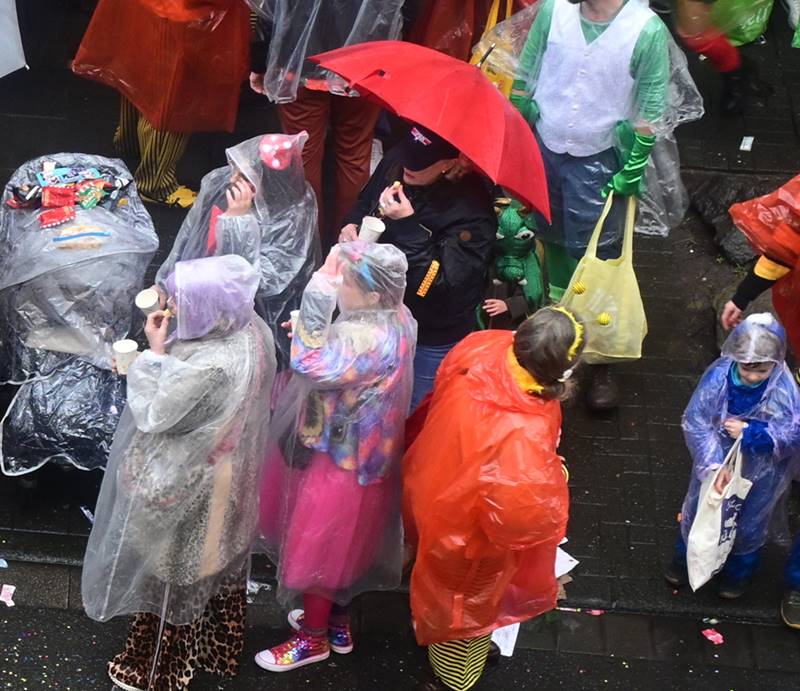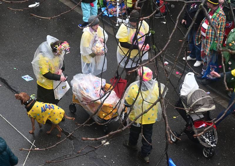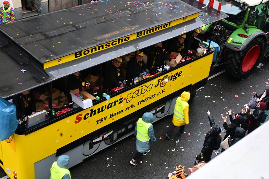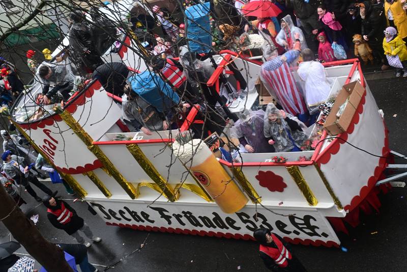 Der Zug zog vorbei an tausenden von begeisterten Zuschauern von nah und fern. Kamelle und Strüssger flogen, es wurde trotz des unfreundlichen Wetters gesungen und getanzt. Die Wäscherprinzessin Judith I. fuhr traditionell auf dem letzten Wagen des Karnevalzuges, begleitet von ihren beiden Wäscherinnen Jule und Lea und beschützt von ihren Bützoffizieren der Beueler Stadtsoldaten.