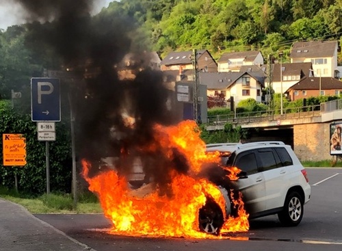 Donnerstagmorgen, 3. Juni 2021, meldeten mehrere Anrufer bei Polizei und Feuerwehr ein brennendes Fahrzeug auf dem Parkplatz St. Remigius in Boppard. Das in Vollbrand stehende Fahrzeug konnte durch die Freiwillige Feuerwehr der Stadt Boppard gelöscht werden. Verletzt wurde niemand. Während des Einsatzes war die B 9 gesperrt. Quelle und Foto: Polizei