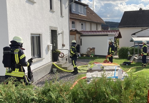 BREITSCHEIDT – Zimmerbrand am Mittwochnachmittag in Breitscheidt wurde schnell gelöscht – Am Mittwochnachmittag, 09. September 2020, wurde gegen 16.20 Uhr der Leitstelle in Montabaur ein Zimmerbrand in einem Einfamilienhaus in der Breitscheidter Bogenstraße gemeldet. Sie alarmierte sofort die Einsatzkräfte der Feuerwehr Hamm/Sieg. Als die Wehr an der Einsatzstelle ankam, quoll schwarzer Rauch aus einem Fenster im Erdgeschoss ins Freie. Die Erkundung durch den Einsatzleiter der Wehr ergab, dass sich keine Personen mehr im Gebäude befanden. Ein Trupp der Feuerwehr ging direkt mit Atemschutzgeräten ausgestattet in das verrauchte Haus vor.
