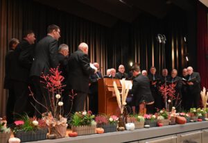 Zum Herbstfest der Chöre hatte am Samstag, 25. Oktober 2025, der Frauenchor Akzente Biersdorf eingeladen. In der herbstlich geschmückten Stadthalle begrüßten Werner Steffens vom Vorstand des KCV Altenkirchen und die Vorsitzende des Frauenchores Akzente Biersdorf, Birgit Muhl. Das Konzert eröffnete der Frauenchor Akzente unter der Leitung der Chorleiterin Isabel Stolpmann. Gefolgt vom gemeinsamen Auftritt mit dem Chor New Voices Neustadt. Danach präsentierte sich New Voices Neustadt mit drei Beiträgen. Mit drei Personen traten Alpenröschen und Enzian an. Es folgte der MGV „Plus“ Sassenroth unter der Leitung von Chorleiter Erik Scheid mit drei hervorragenden Stücken von Elvis Presley, Felix Mendelson Bartholdy und Leonard Chen. Die erste Konzerthälfte rundete der MGV Eintracht Steinebach unter der Leitung von Thorsten Stendenbach.