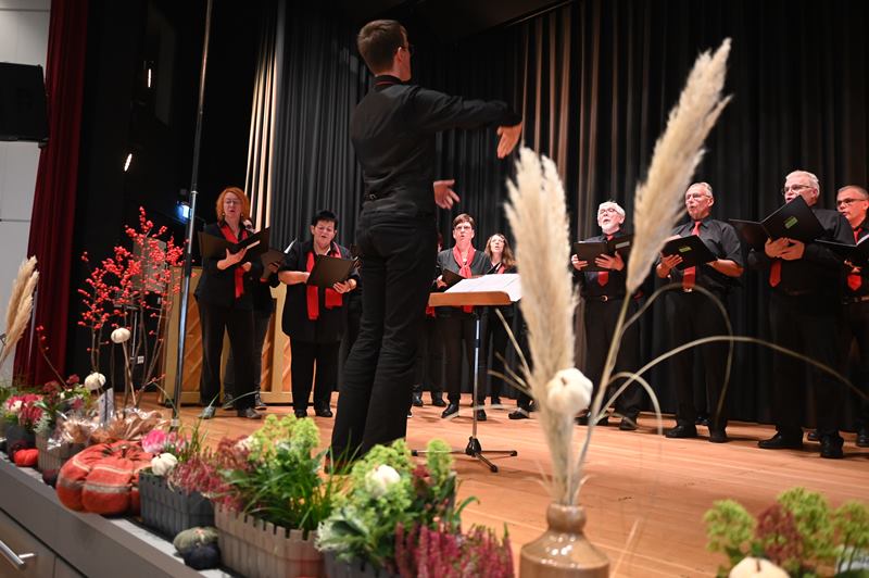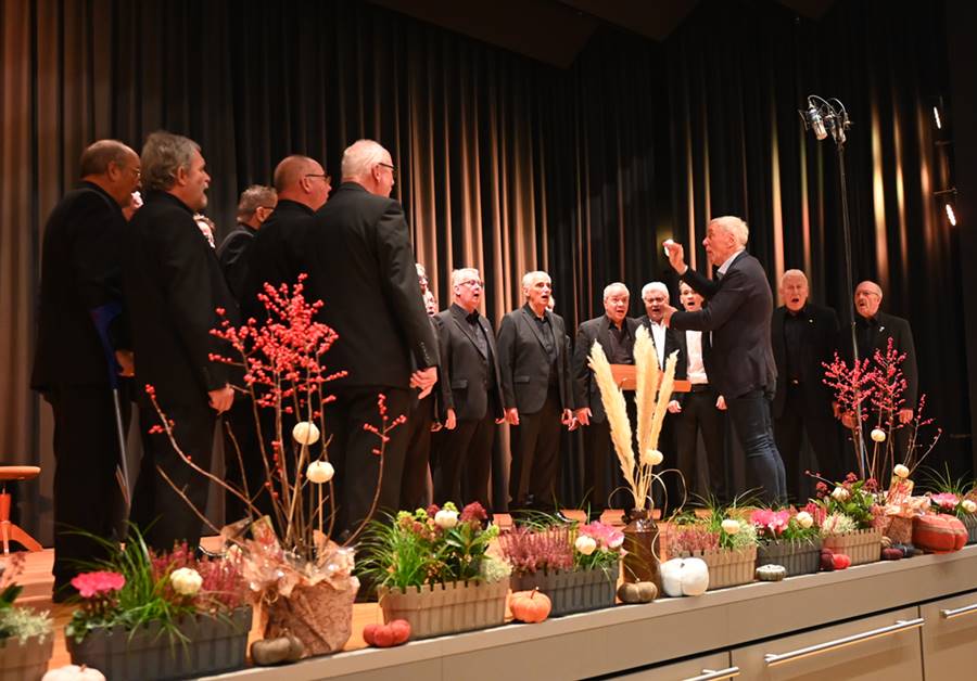 Zum Herbstfest der Chöre hatte am Samstag, 25. Oktober 2025, der Frauenchor Akzente Biersdorf eingeladen. In der herbstlich geschmückten Stadthalle begrüßten Werner Steffens vom Vorstand des KCV Altenkirchen und die Vorsitzende des Frauenchores Akzente Biersdorf, Birgit Muhl. Das Konzert eröffnete der Frauenchor Akzente unter der Leitung der Chorleiterin Isabel Stolpmann. Gefolgt vom gemeinsamen Auftritt mit dem Chor New Voices Neustadt. Danach präsentierte sich New Voices Neustadt mit drei Beiträgen. Mit drei Personen traten Alpenröschen und Enzian an. Es folgte der MGV „Plus“ Sassenroth unter der Leitung von Chorleiter Erik Scheid mit drei hervorragenden Stücken von Elvis Presley, Felix Mendelson Bartholdy und Leonard Chen. Die erste Konzerthälfte rundete der MGV Eintracht Steinebach unter der Leitung von Thorsten Stendenbach.