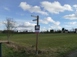 Beladen mit Pfählen, Schildern und Werkzeugen, begleitet von strahlendem Sonnenschein brachten die Akteure der BI Infotafeln an, die auf die geplante Ortsumgehung hinweisen. Die Schilder sind nun entlang der möglichen Trassenvarianten nördlich und südlich zu finden. Wanderer können sich auf den ersten Blick über den genauen Verlauf der Strecke informieren.