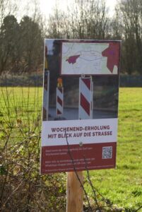 Durchgeführt wurde das Aufstellen der Schilder von Nadja Michels und Sandra Lothmann, die die tatkräftige Aktion für einen ersten Austausch mit interessierten Spaziergängern nutzten. Dabei stellten sie fest, dass die meisten ortsansässigen Bürger nur wenig über die geplanten Maßnahmen wissen oder davon ausgehen, dass das Bauvorhaben noch in weiter Ferne läge.
