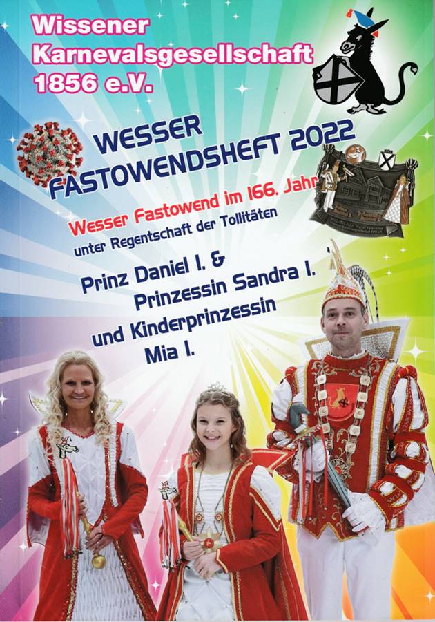 2021 hatte man sich mit einer digitalen Ausgabe begnügt, was offenbar in der Bevölkerung nicht so gut angekommen ist. Das neue Heft bietet auf gut 100 Seiten einen bunten Überblick zum Vereinsleben der KG. Im Mittelpunkt stehen natürlich die aktuellen Majestäten. Prinz Daniel I. mit seiner Prinzessin Sandra I. sowie Kinderprinzessin Mia I. regieren mit Charme und guter Laune, dies schwingt durch das ganze Heft.