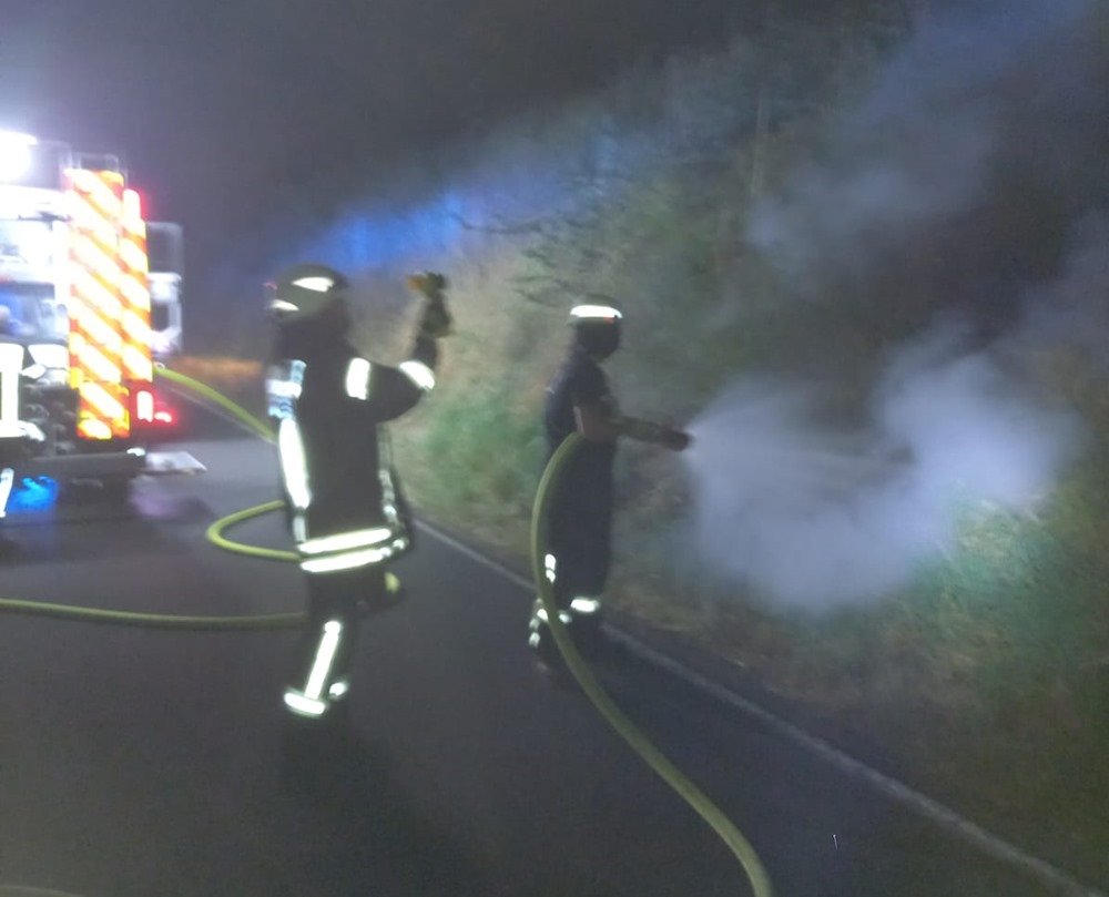 Noch währenddessen kam es zur Alarmierung für die Einheit Kausen um den Brand einer Feuertonne (!) am Ortsrand von Molzhain abzulöschen. Auch der Löschzug Elkenroth wurde noch während der anderen laufenden Einsätze alarmiert. In Fahrtrichtung Dickendorf musste ein kleinerer Flächenbrand gelöscht werden.