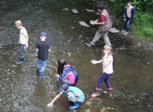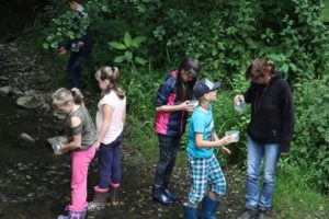 DÖTTESFELD-FLAMMERSFELD – Ferienspaß in der Verbandsgemeinde Altenkirchen-Flammersfeld – Mit Droppy, dem BHAG Wassertropfen in die Ferien! – Egal ob bei Regen oder Sonnenschein, den spannenden Geheimnissen der Ressource Wasser in kleinen Gruppen an einem Ferientag auf den Grund zu gehen, das machte den sechs- bis zehnjährigen Nachwuchsforschern der Verbandsgemeinde Altenkirchen-Flammersfeld sichtlich Spaß. Mit Gummistiefeln und Wechselkleidung ausgerüstet begleiteten die Kinder den BHAG Wassertropfen an unterschiedliche Referenzorte in Flammersfeld und Döttesfeld im Wiedtal.