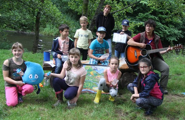 DÖTTESFELD-FLAMMERSFELD – Ferienspaß in der Verbandsgemeinde Altenkirchen-Flammersfeld – Mit Droppy, dem BHAG Wassertropfen in die Ferien! – Egal ob bei Regen oder Sonnenschein, den spannenden Geheimnissen der Ressource Wasser in kleinen Gruppen an einem Ferientag auf den Grund zu gehen, das machte den sechs- bis zehnjährigen Nachwuchsforschern der Verbandsgemeinde Altenkirchen-Flammersfeld sichtlich Spaß. Mit Gummistiefeln und Wechselkleidung ausgerüstet begleiteten die Kinder den BHAG Wassertropfen an unterschiedliche Referenzorte in Flammersfeld und Döttesfeld im Wiedtal.