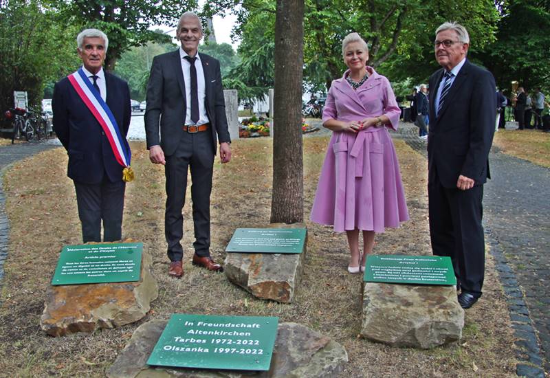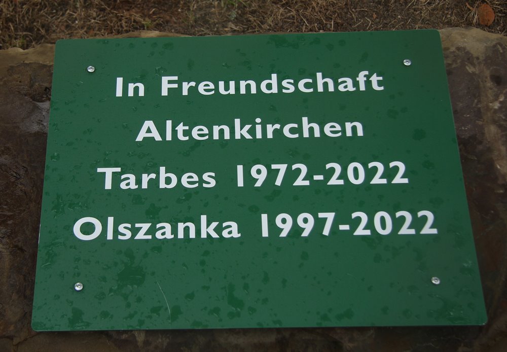 50 Jahre Freundschaft zwischen der Stadt Altenkirchen, der Stadt Tarbes und der Gemeinde Olszanka waren Grund zur Platzierung von vier Bodentafeln mit Bezug auf die Menschenrechte. Bürgermeister Fred Jüngerich hatte zur feierlichen Enthüllung der Menschenrechtstafeln des Artikels 1 der allgemeinen Erklärung der Menschenrechte der Vereinten Nationen, ausgeführt in den drei Sprachen der beteiligten drei Gemeinden aus drei Ländern, Deutschland, Frankreich und Polen, eingeladen.