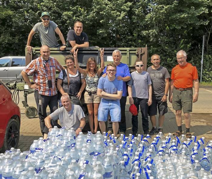 Foto: Frank-Peter Kern (links) mit weiteren Ehrenamtlichen bei einem Hilfseinsatz nach der Flutkatastrophe im Ahrtal.