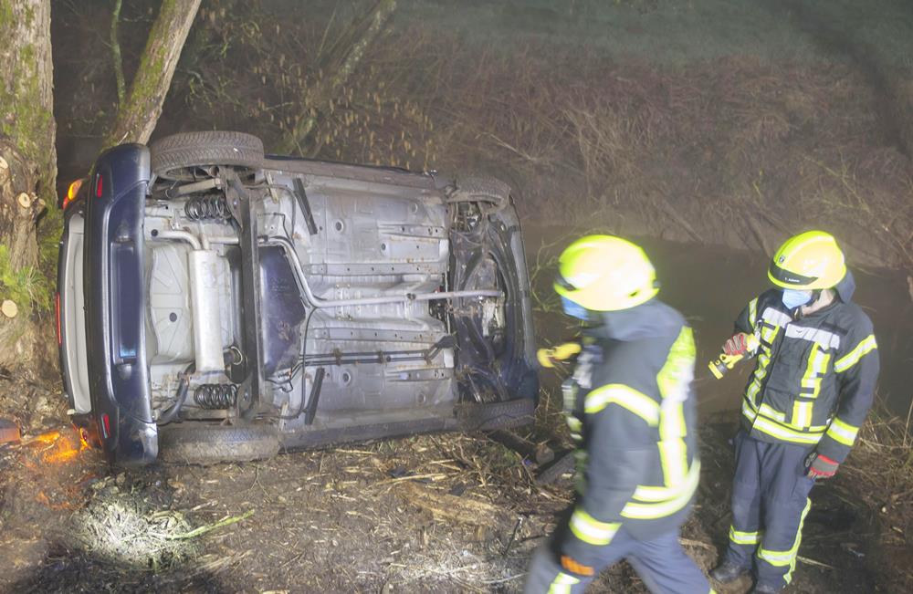 Der Fahrer eines Pkw kam aus Raubach. In Höhe des Stadtteils Dierdorf-Wienau kam der Mann von der Straße ab und stürzte mit seinem Pkw eine hohe Böschung hinab. Das Fahrzeug kam auf der Fahrerseite liegend an einem Baum direkt am Holzbach zum Stehen. Der Mann aus der Verbandsgemeinde Puderbach konnte sich bis zum Eintreffen der ersten Kräfte der Feuerwehr selbst aus dem Fahrzeugwrack befreien und saß neben seinem Fahrzeug.