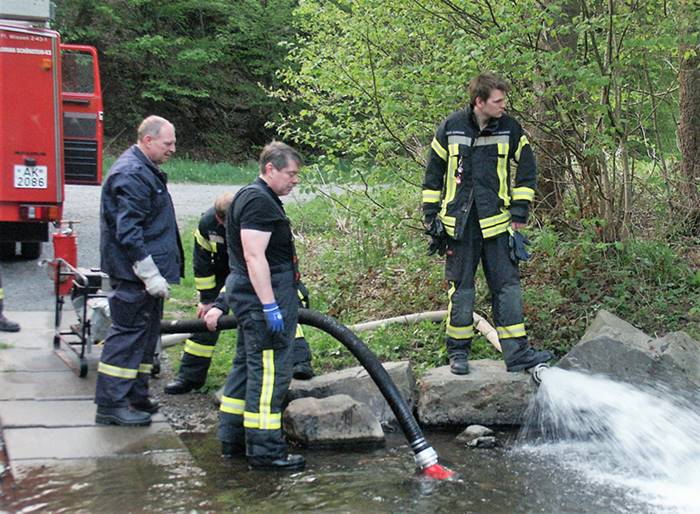 Freiwillige Feuerwehr Schönstein übt Aufnahme von Wasserbedarf