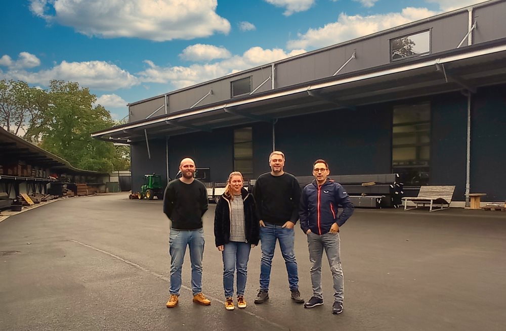 Foto: Ortstermin der Wirtschaftsförderung bei Hermann Metallbau GmbH in Friesenhagen: (von links) Jan Philipp Minor, Riccarda Vitt, Ingmar Knall und Tim Kraft (Foto: Wirtschaftsförderung)