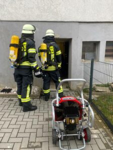 Aufgrund dessen konnte der Einsatz, nachdem das Gebäude vorsichtshalber noch mit einem Lüfter gelüftet wurde, nach rund einer Stunde beendet werden. Für den Eigenschutz der Feuerwehrkräfte war zusätzlich noch der DRK Ortsverein aus Elkenroth ausgerückt. (mab) Fotos: FFW VG Betzdorf-Gebhardshain