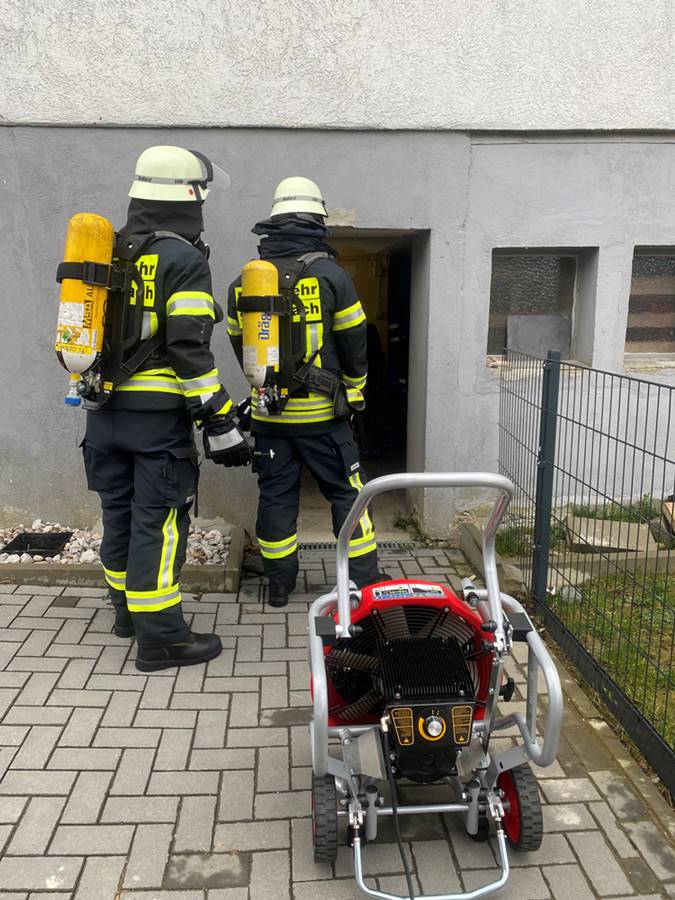 Die rund 35 im Einsatz befindlichen Kräfte stellten zunächst den Brandschutz sicher und kontrollierten anschließend unter Atemschutz das Wohnhaus auf eine eventuelle Explosionsgefahr.