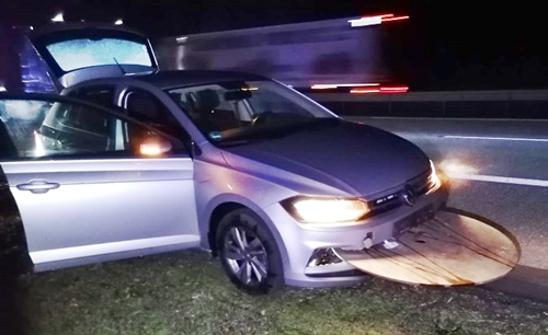 GAU-BICKELHEIM – Holzstück bohrt sich auf der A 61 in PKW