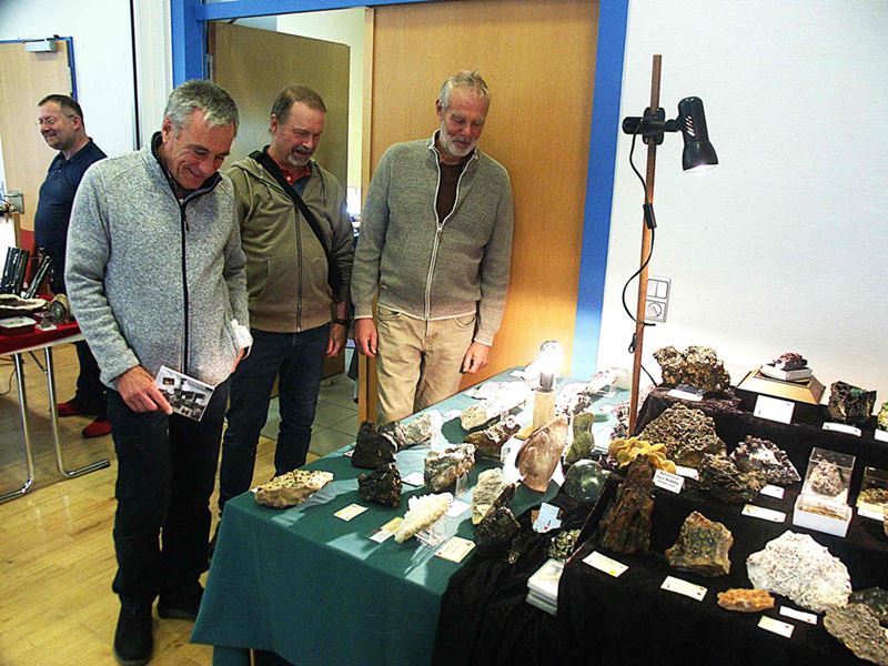 Der Förderverein der Grube Bindweide zeigte sich recht zufrieden mit dem Andrang mit der Schmuck- und Mineralienbörse im Gebhardshainer Rathaus. An dreizehn Ständen präsentierten Aussteller aus einem weiten Umkreis allerhand seltene und schöne Mineralstufen. Zu sehen gab es unter anderem Stücke von den Gruben Katzwinkel, Eupel, Ameise, Stahlberg oder Hollertszug. Aber auch ferne Länder wie Peru oder Argentinien glänzten mit wunderbaren Mineralien. Selbst die umstrittenen Heilsteine stießen auf Interesse. An einem der Stände konnten sich Kinder eiförmige Drusen aufknacken lassen. Im Inneren kam so mancher Schatz zum Vorschein. Hauptgast war aber die aktuelle Deutsche Edelsteinkönigin Vivian Heidrich. Die junge Dame sah sich alles genau an und verteilte auch Präsente aus ihrer Schatzkiste an die jüngeren Besucher. Natürlich beantwortete sie auch Fragen rund um ihre ehrenamtliche Tätigkeit im Auftrag des Fördervereins Deutsche Edelsteinstraße e.V. in Idar-Oberstein. Heidrich kam übrigens auch selbst in den Genuss eines Geschenks. Händlerin Irma Büdenhölzer aus Herdorf überreichte ihr ein kleines Stück Pyrit von der 1963 geschlossenen Grube „Vereinigung“ in Katzwinkel. Direkt neben dem Ausstellungs- und Verkaufsraum servierten die Damen des Bindweider Fördervereins leckeren Kuchen und trugen damit zum Erfolg der Börse bei. (bt) Fotos: Bernhard Theis