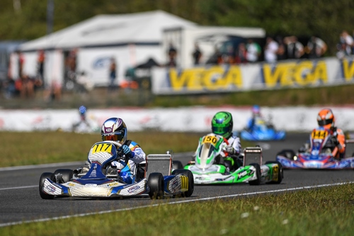 In einem sehr ereignisreichen Rennen, bei dem die Fahrer größtenteils in einer zwanzigköpfigen Führungsgruppe fuhren, nahm sich der Pilot aus Hamm/Sieg viel vor und zeigte gleich mehrere starke Manöver. Als 13. lag er im vorderen Mittelfeld und freute sich über weitere Punkte in der Deutschen Junioren-Kart-Meisterschaft.