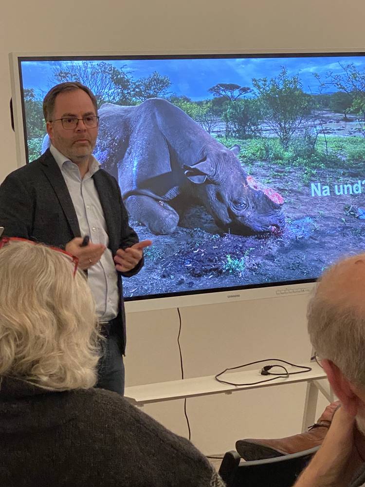 Professor Hof, der einen Lehrstuhl an der Uni Würzburg zu Fragen des ökologischen Wandels innehat, brachte einen reichen Fundus an Informationen, Ergebnissen der Forschung und Bewertungen mit und schilderte engagiert und differenziert die Entwicklung der zerstörerischen Ausbeutung der Erde durch den Menschen, ihren dramatischen Anstieg seit dem Beginn der industriellen Revolution und die bis heute anhaltende Klimax infolge des sogenannten Wirtschaftswunders der 50er Jahre, die mit dem Begriff des Anthropozän (grch. anthropos: Mensch, kainos: neu), des „Zeitalters des Menschen“, markiert wird.