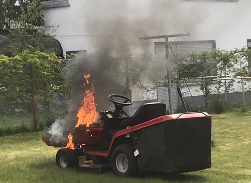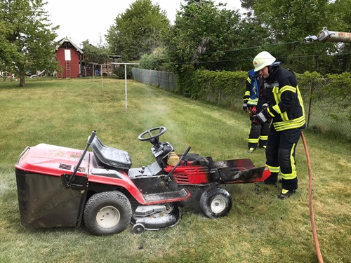 HECKENHOF – Fahrzeugbrand in Heckenhof – Am Samstagmorgen, 09 Mai 2020, wurde die Freiwillige Feuerwehr Hamm/Sieg um 10.12 Uhr alarmiert. Der Leitstelle in Montabaur war über Notruf ein Fahrzeugbrand im Fichtenweg in Heckenhof gemeldet worden. Noch auf der Anfahrt der ersten Einsatzkräfte meldete die Leitstelle in Montabaur, dass es sich um einen Brand eines Aufsitzmähers handelt. Das Feuer konnte vom Meldenden mit einem Pulverlöscher eingedämmt werden. Mit dem Schnellangriff des Hilfeleistungslöschfahrzeuges (HLF 20) der Hammer Wehr konnten weitere kleine Glutnester gelöscht werden. Abschließend kontrollierte der Angriffstrupp mit der Wärmebildkamera, ob alle Brandstellen gelöscht wurden. Die Feuerwehr Hamm war mit zwei Fahrzeugen vor Ort. Zwei sich noch auf der Anfahrt befindende Tanklöschfahrzeuge konnten aufgrund der Rückmeldung von der Einsatzstelle ihre Einsatzfahrt abbrechen. Im Einsatz waren insgesamt 19 Wehrleute. (ct) Fotos: Privat/Alexander Müller
