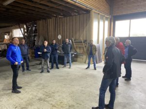 Erster Besuchspunkt war die Zimmerei-Bedachungen Link. Vom Inhaber Martin Link wurde man in dem Familienunternehmen, welches seit 1949 besteht, in Empfang genommen. Er führt das Unternehmen mit 4 Beschäftigten in der dritten Generation. Ursprünglich als reine Zimmerei begonnen, hat man das Leistungsspektrum um das Dachdecken erweitert und bietet somit ein „Rundum“ Paket an. Auch die Holzbearbeitung wird selbst vor Ort durchgeführt. Die Auftragslage bezeichnete Link als gut. Darauf angesprochen, wo man aus der kommunalpolitischen Seite helfen kann, kam unwillkürlich das Thema Bürokratieabbau zur Sprache. Die Verwaltungsaufgaben nehmen einen immer größer werdenden Anteil im Geschäftsleben auf. Was für einen solchen, doch relativ kleinen, Familienbetrieb Ressourcen bindet, welche man durchaus anderweitig besser einsetzen kann.
