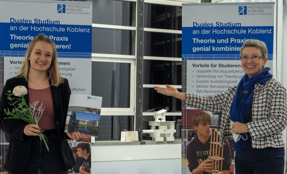 Das Koblenzer Hochschulprojekt „Dual trifft International“ fördert über eine Laufzeit von zwei Jahren eine Internationalisierung des dualen Studiums, baut Informations- und Beratungsangebote aus, stärkt die internationalen Netzwerke der Hochschule, schafft ein neues, englischsprachiges Online-Lehrangebot und vergibt exklusive Auslandsstipendien an dual Studierende. „Durch die enge Verzahnung von Theorie und Praxis sind Auslandsaufenthalte im dualen Studium schwieriger zu realisieren. Daher freuen wir uns umso mehr über diese Möglichkeit“, betont Prof. Dr. Daniela Braun, Projektleiterin und Vizepräsidentin für Lehre und Diversity an der Hochschule Koblenz. Das Projekt wird durch Mittel des Deutschen Akademischen Austauschdiensts (DAAD) und des Bundesministeriums für Bildung und Forschung (BMBF) finanziert.