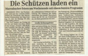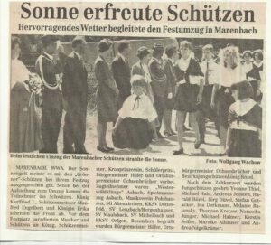 MARENBACH – In Marenbach steht am Wochenende, von Freitag bis Montag, das traditionelle Schützenfest an