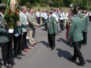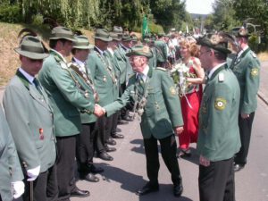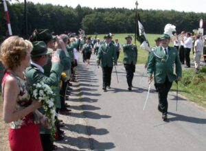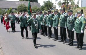 Zum Auftakt des 33. Schützenfestes standen die feierliche Krönung des neuen Schützenkönigs „Ralf I.“ und die Verabschiedung seines Vorgängers „Heinz-Gerd I. im Vordergrund.