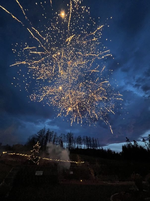 Die verschiedenen Aktionen in der Weihnachtsbude während der Adventszeit wurden von den Bewohnern und Mitarbeitern des Seniorenpflegehaus mit großer Begeisterung angenommen. Wie auf dem Weihnachtsmarkt: roter Glühwein, Apfelwaffeln, Besuch des Blasorchester Mehrbachtal, selbstgebackene Plätzchen, weißer Glühwein, Pommes in der Tüte, Bratwürstchen vom Grill, warmer Apfelsaft, Orangenpunsch und zum Abschluss an Silvester ein wunderschönes Feuerwerk. Die Leitung dankte den Pyrotechnikern Jörg und Jannik Schwarzbach und den Mitarbeitern die tatkräftig bei der Umsetzung der Aktionen geholfen haben. Es war eine gelungene Veranstaltung. Die Bewohner haben es genossen draußen zusammen zu stehen, die vorweihnachtliche Stimmung zu genießen, Erinnerungen auszutauschen und einfach das Gefühl von Weihnachten zu haben. Fotos: privat