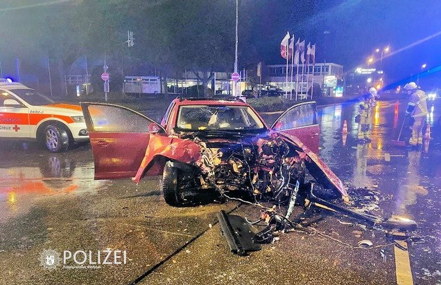 An einer Ampelkreuzung in der Pariser Straße in Kaiserslautern ist es am späten Mittwochabend, 20. Oktober 2021, zu einem Verkehrsunfall gekommen. Ein Funkstreifenwagen der Polizei und ein VW Golf kollidierten miteinander. Drei Menschen wurden verletzt, an beiden Fahrzeugen entstanden Totalschäden. Der Gesamtschaden liegt, so die Polizei, im höheren fünfstelligen Bereich.