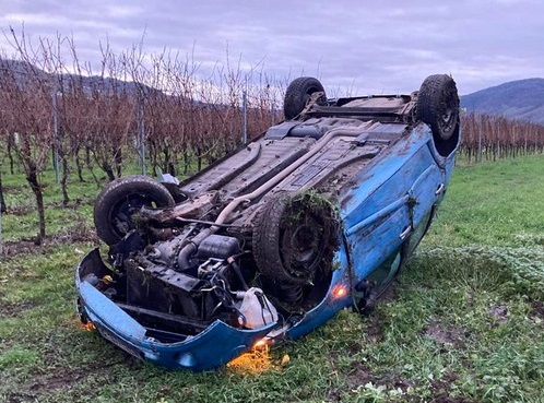Am Mittwochnachmittag, 30. Dezember 2020, fuhr ein 30jähriger Fahrer von der Mittelmosel gegen 16:15 Uhr die K 134, von Lieser kommend in Richtung Kesten. Aus ungeklärter Ursache kam das Fahrzeug auf gerader Strecke nach rechts von der Fahrbahn ab, geriet ins Schleudern und rutschte auf die Gegenfahrbahn. Dort überschlug es sich und kam im Straßengraben auf dem Dach liegend zum Stillstand. Der Fahrer konnte sich selbständig befreien, wurde aber schwer verletzt. An dem PKW entstand Totalschaden. Im Einsatz befand sich ein Fahrzeug des DRK, der Rettungshubschrauber Christoph 10 und die Polizei Bernkastel-Kues. Quelle und Foto: Polizei