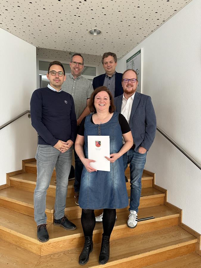 Bürgermeister Andreas Hundhausen überreichte die Ernennungsurkunde und dankte Höfer für die geleistete Arbeit. Büroleiter Michael Dützer, Fachbereichsleiter Tim Kraft und Personalratsvorsitzender Alexander Grindel schlossen sich gerne den Glückwünschen an.