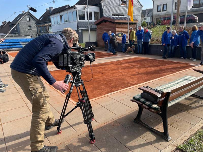 Nach mehreren Telefonaten, Abstimmungen und Vor-Ort-Begehungen stand schließlich der Drehtag fest: 10. März 2026. Pünktlich um 10 Uhr traf ein achtköpfiges Kamerateam des SWR in Kirchen ein. Die ersten Aufnahmen entstanden auf der sogenannten Klickerarena des Vereins in der Kirmesfeldstraße. Dort wurde das traditionelle Klickerspiel vorgestellt und die beiden offiziellen Städte-Paten präsentiert: Bernd Schneider, 1. Vorsitzender des 1. Kirchener Klickervereins und Michaela Stötzel, selbst begeisterte Klickerin und zugleich Gästeführerin für das Druiden.Hexen.Siegerland der Touristik der Verbandsgemeinde Kirchen (Sieg)