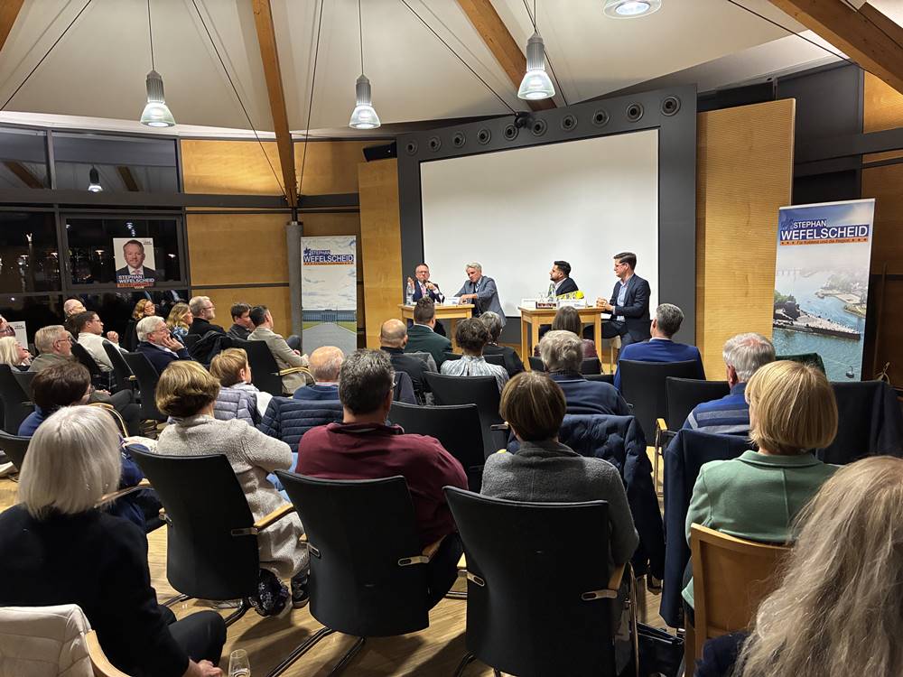 Dr. Jochen Wilhelm ergänzt: „Herr Wefelscheid hat heute Abend gezeigt, dass er eine Vielzahl von Themen souverän bearbeitet und politisch liefern kann. Die Veranstaltung war inhaltlich wie auch organisatorisch sehr stark, das haben mir auch im Gespräch Teilnehmer so gesagt. Und er hat viele Themen, wie etwa das Autowaschverbot an Sonntagen, aber auch Digitalisierung oder ÖPNV aufgegriffen, die die Anwesenden sichtbar interessiert und angesprochen haben.“